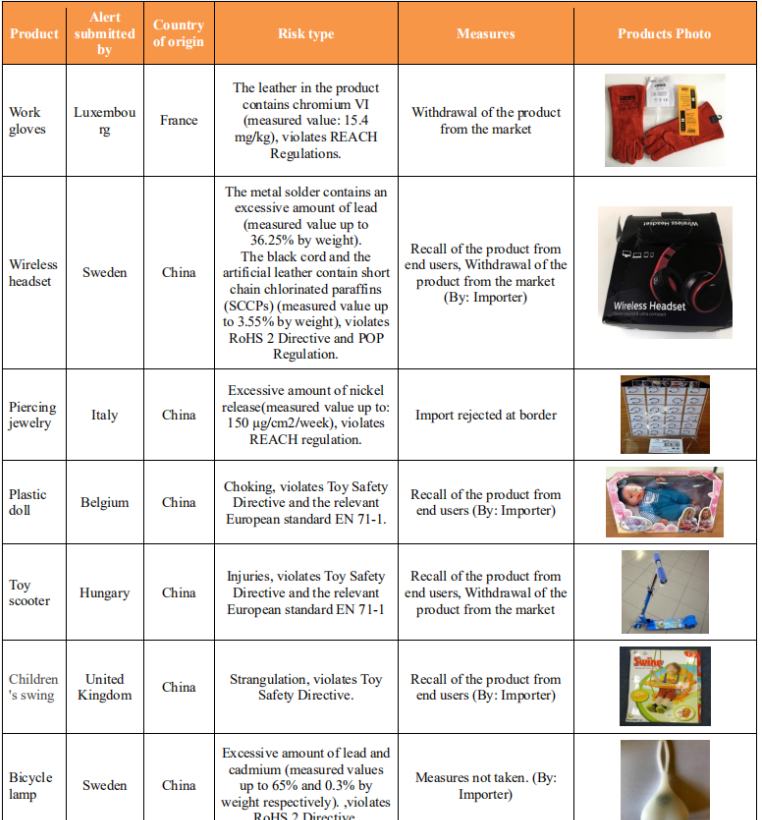 Since November 2019, the European Rapid alert system for dangerous non-food products has continuouslynotified unsafe products, a considerable part of the products come from China. GST reminds companies pay attention to quality control and avoid becoming the next notified case. Representative cases are organized as follows: